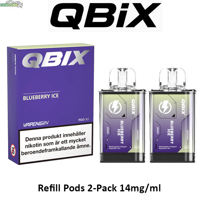 - Förfylld e-juice: Varje QBIX-pod är förfylld med högkvalitativ e-vätska i olika smaker, vilket eliminerar behovet av påfyllning.