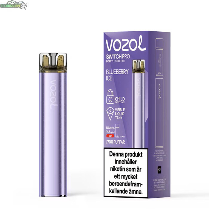 Vozol Switch är ett modernt engångs vape podsystem som förenar hållbar konstruktion med smidig användning. Systemet finns i två startkit varav ett mer kompakt picoformat och ett Pro kit som “penn-format”. Istället för att slänga hela enheten byter du bara ut de förfyllda poddarna och laddar batteridelen. Switch levererar upp till 700 puffar per pod och finns med antingen 10mg/ml eller 14.5mg/ml nikotinsalt.